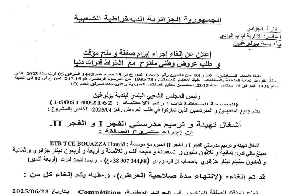 - إعلان عن مناقصة وطنية مفتوحة