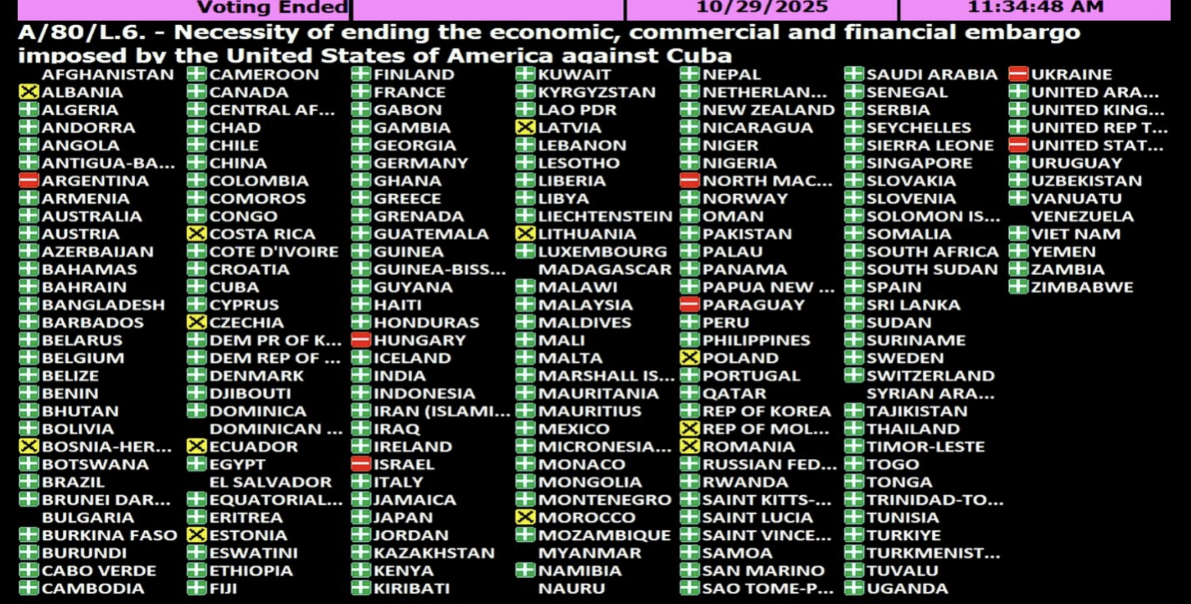 165 États réclament la fin du blocus contre Cuba, les États-Unis et Israël s’y opposent, le Maroc s’abstient
