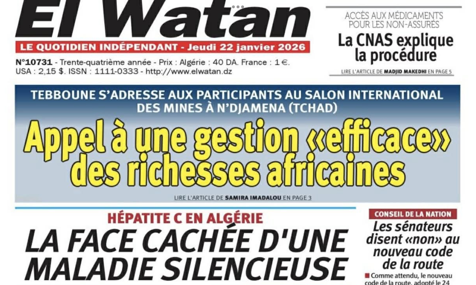 À la suite de la publication par le quotidien El Watan, dans son numéro 10731 du jeudi 22 janvier 2026, d’un article en une et d’un autre en page intérieure intitulé « Les sénateurs disent non au nouveau code de la route », le ministère de la Communication a estimé que l’information diffusée était « erronée et trompeuse pour l’opinion publique ». Cette publication, jugée « contraire à la réalité selon un communiqué officiel du Conseil de la Nation », constitue également une « violation manifeste des dispositions de la loi organique sur l’information du 27 août 2023 », notamment les articles 3, 20 et 35, ainsi que de la loi n°23-19 relative à la presse écrite et électronique.